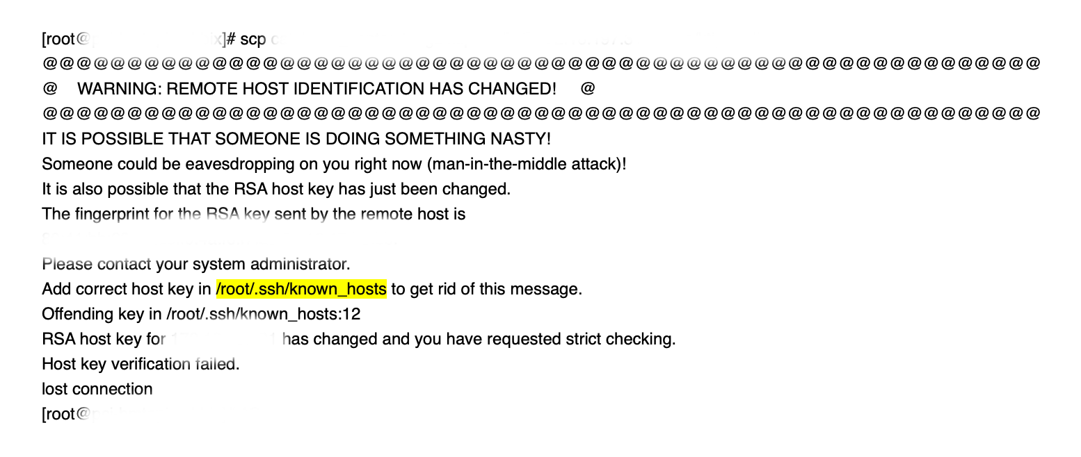 접속할 서버로 ssh 또는 scp를 사용하려거든 /root/.ssh/known_hosts 파일을 수정하라고 하네요