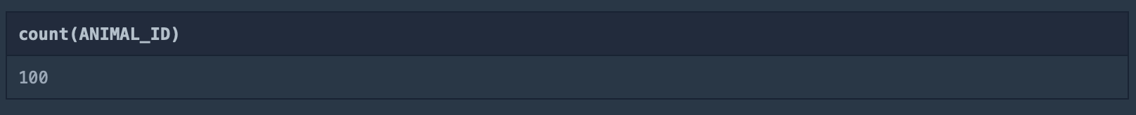 생물의 종이나 보호 시작일 등의 개수를 세도 되겠지만, 가장 먼저 제공되는 동물의 ID를 기준으로 count 했습니다.