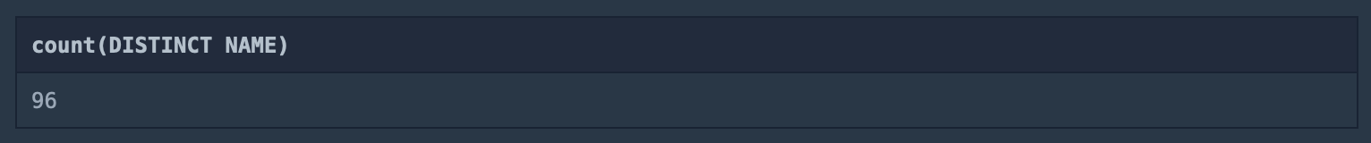 단, 이름이 NULL인 경우는 집계하지 않으며, 중복되는 이름은 하나로 합친다.