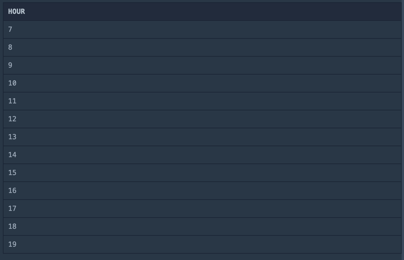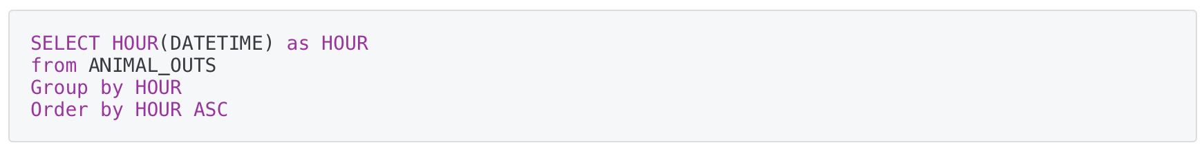 WHERE HOUR(DATETIME) = @TIME) as OUT_COUNT