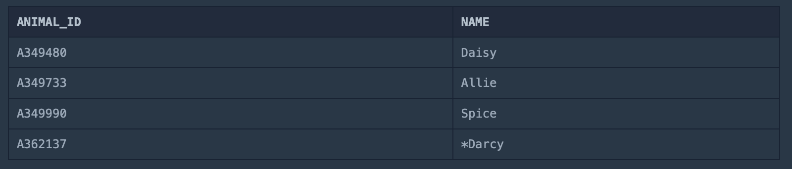 동물을 입양 보낸 기록은 유실되지 않았기 때문에 ANIMAL_OUTS 테이블을 필수 테이블로 사용하겠습니다.