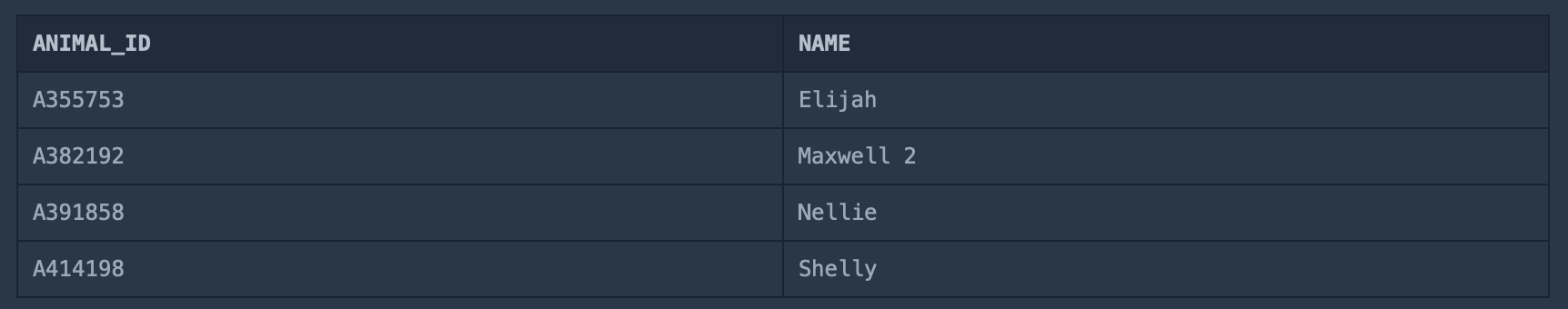 SELECT ANIMAL_ID, NAME FROM ANIMAL_INS