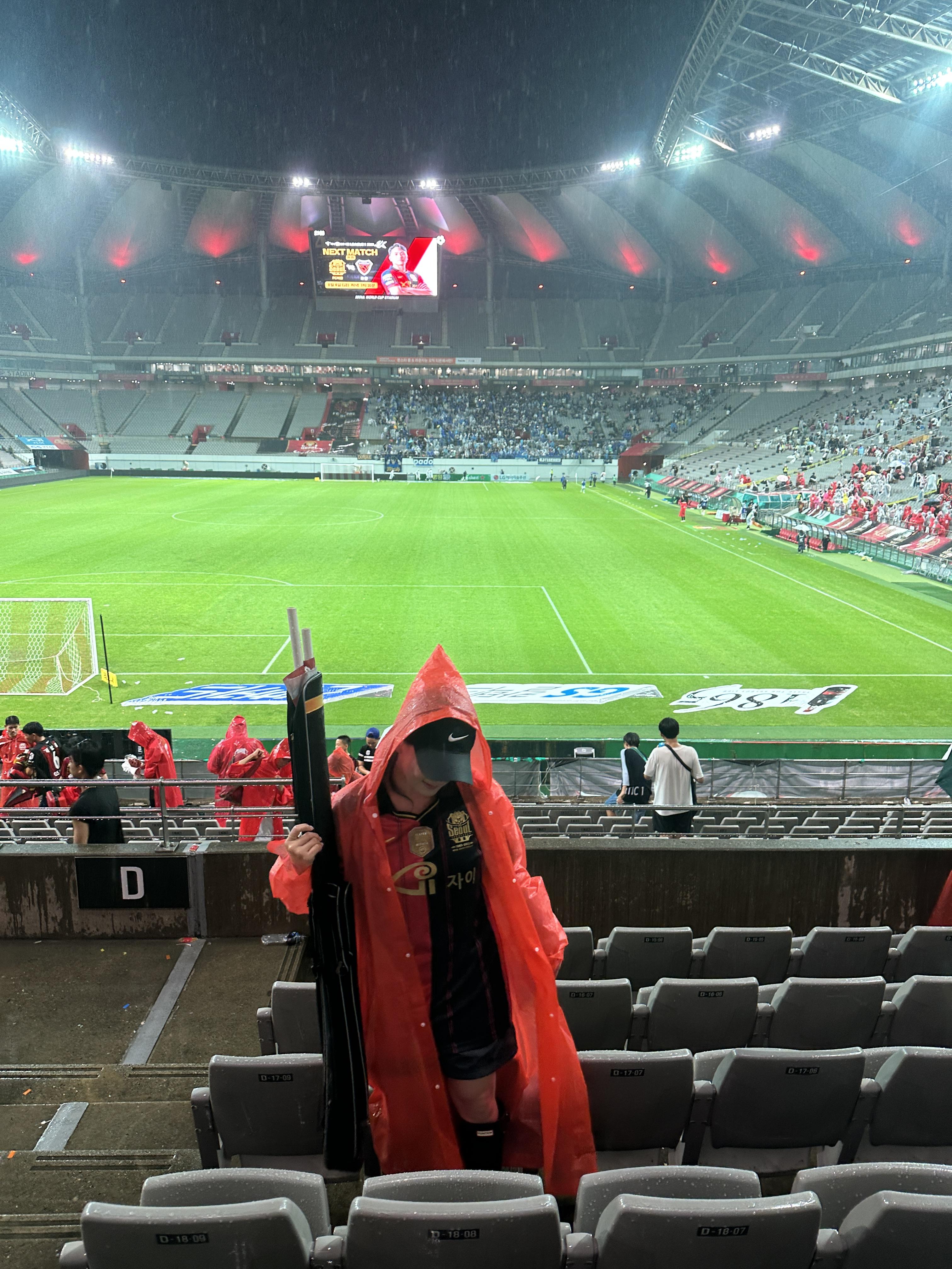 천장이 없는 경기장이면 생각보다 비에 젖을일이 많아요