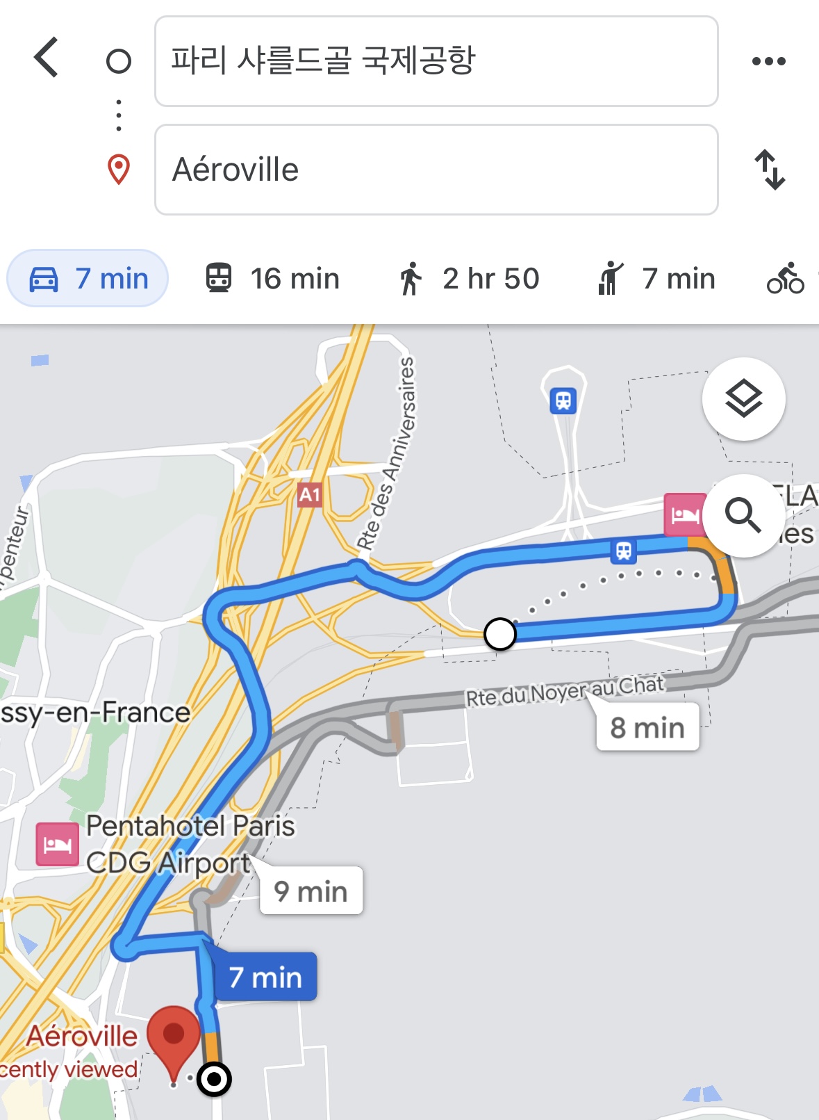 이동 거리는 샤를드골 공항에서 아에호힐이라는 쇼핑몰이었고요, 5.4km로 멀지 않은 거리였습니다