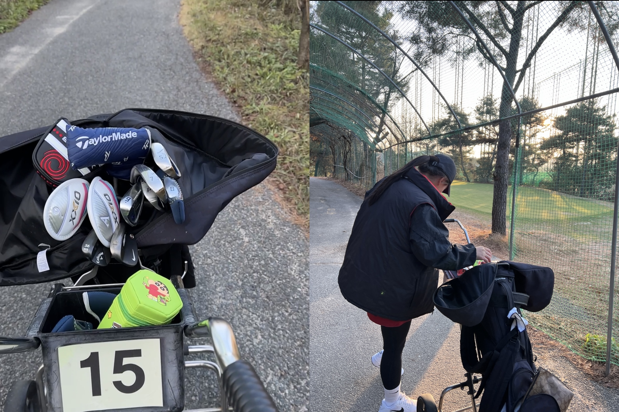 그래서 저희는 하나의 골프백에 옮겨담아 카트는 하나만 사용했습니다!!