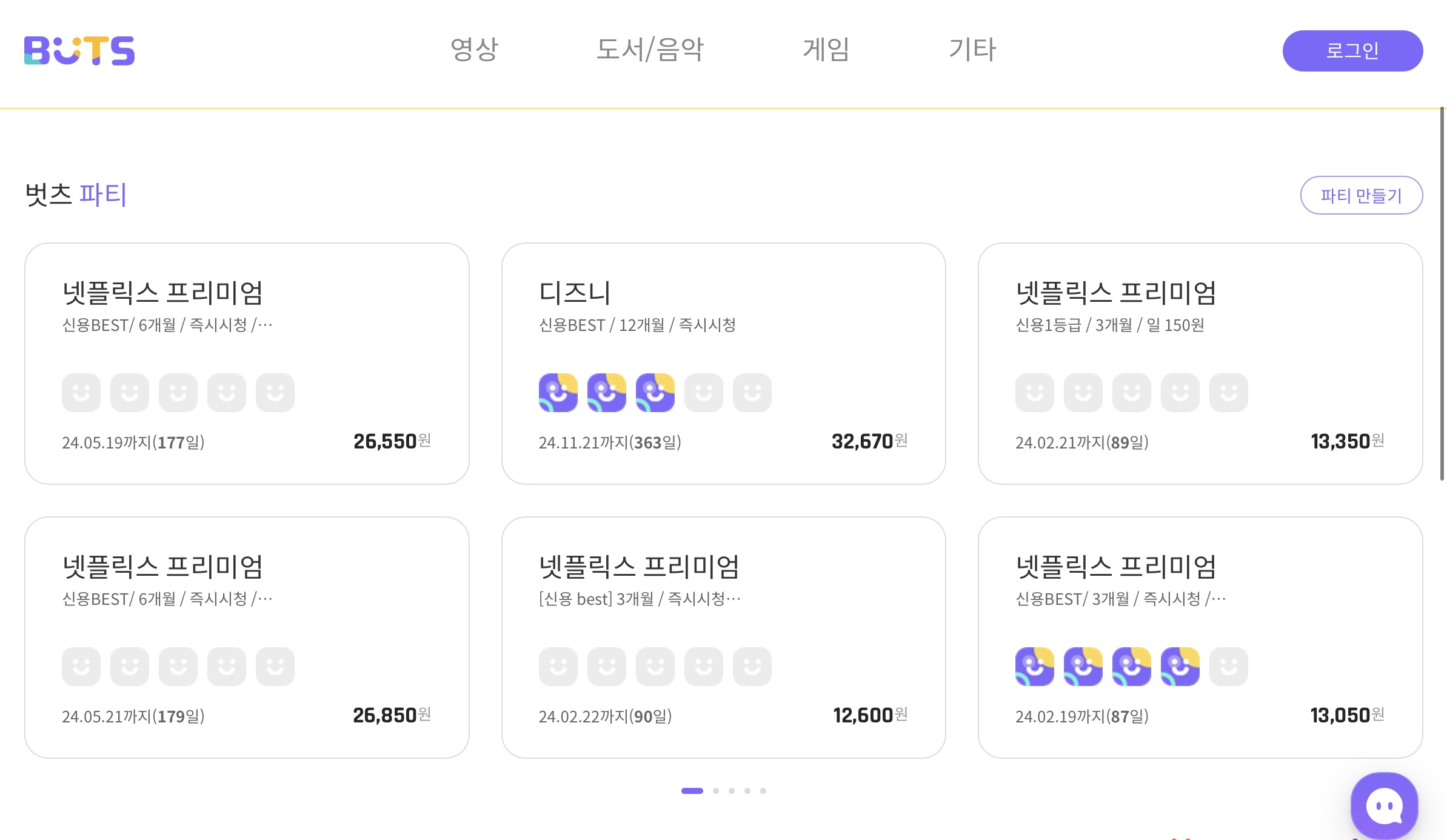 Buts는 OTT 계정을 특정 기간만큼만 공유하는 사이트다