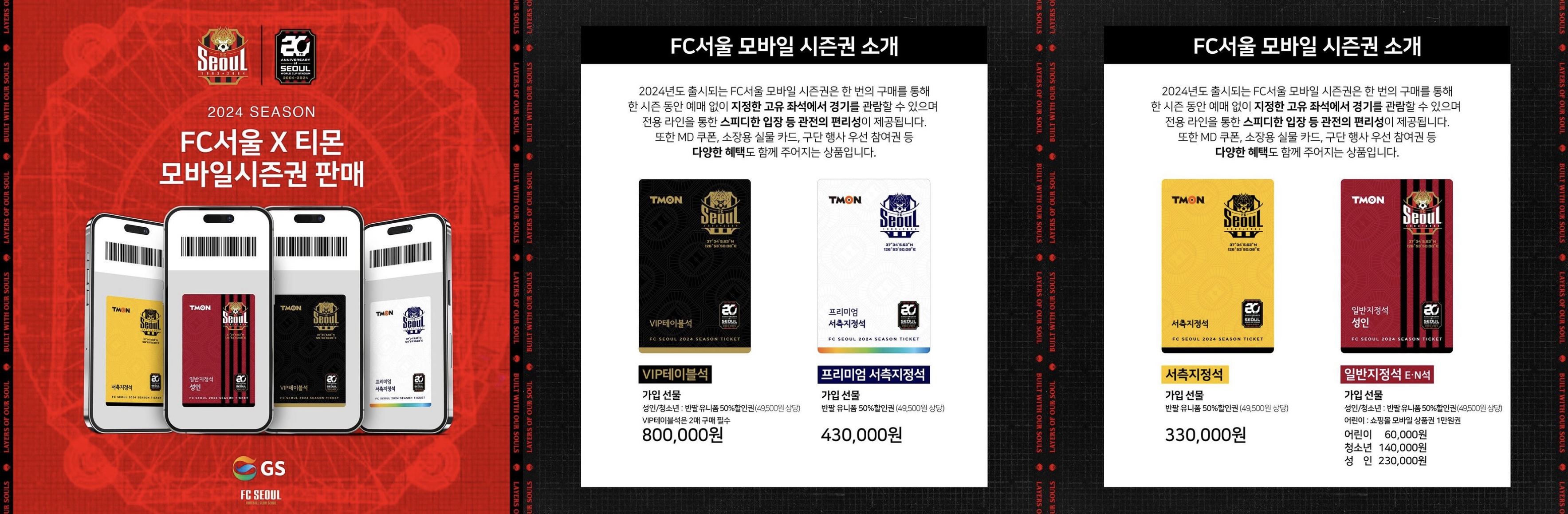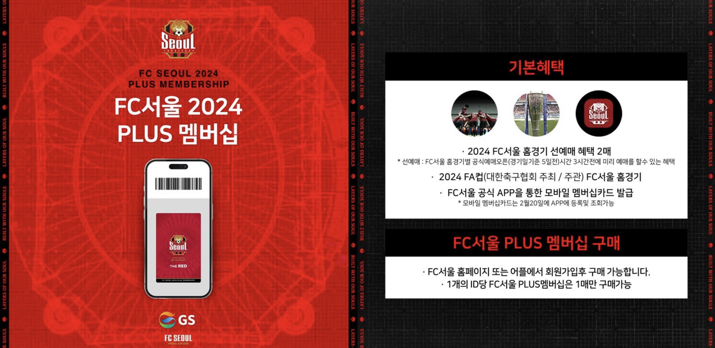 FC서울은 PLUS멤버십과 모바일 시즌권을 판매하고 있어요