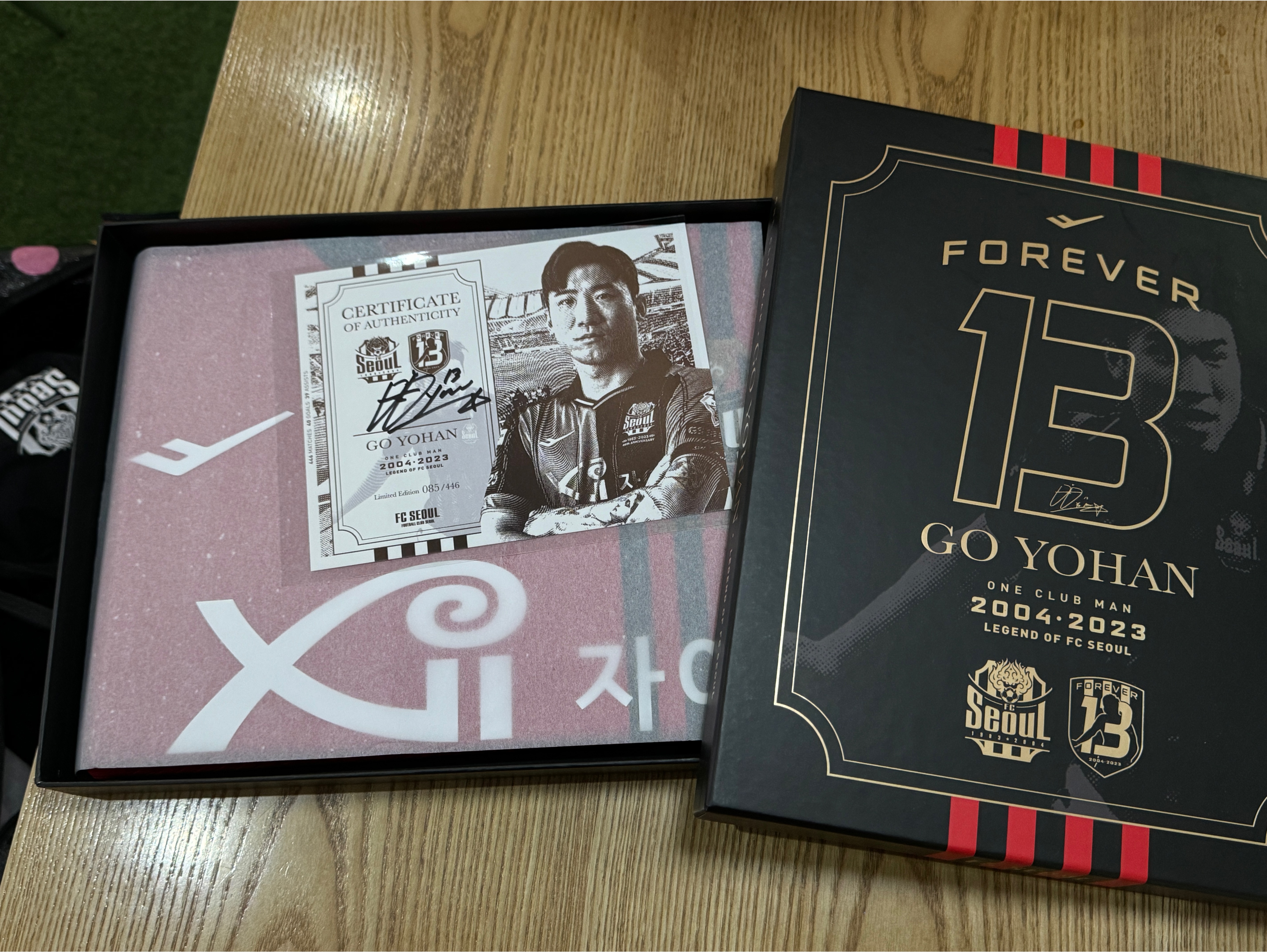 상자 속은 고요한선수 기념 유니폼과 싸인