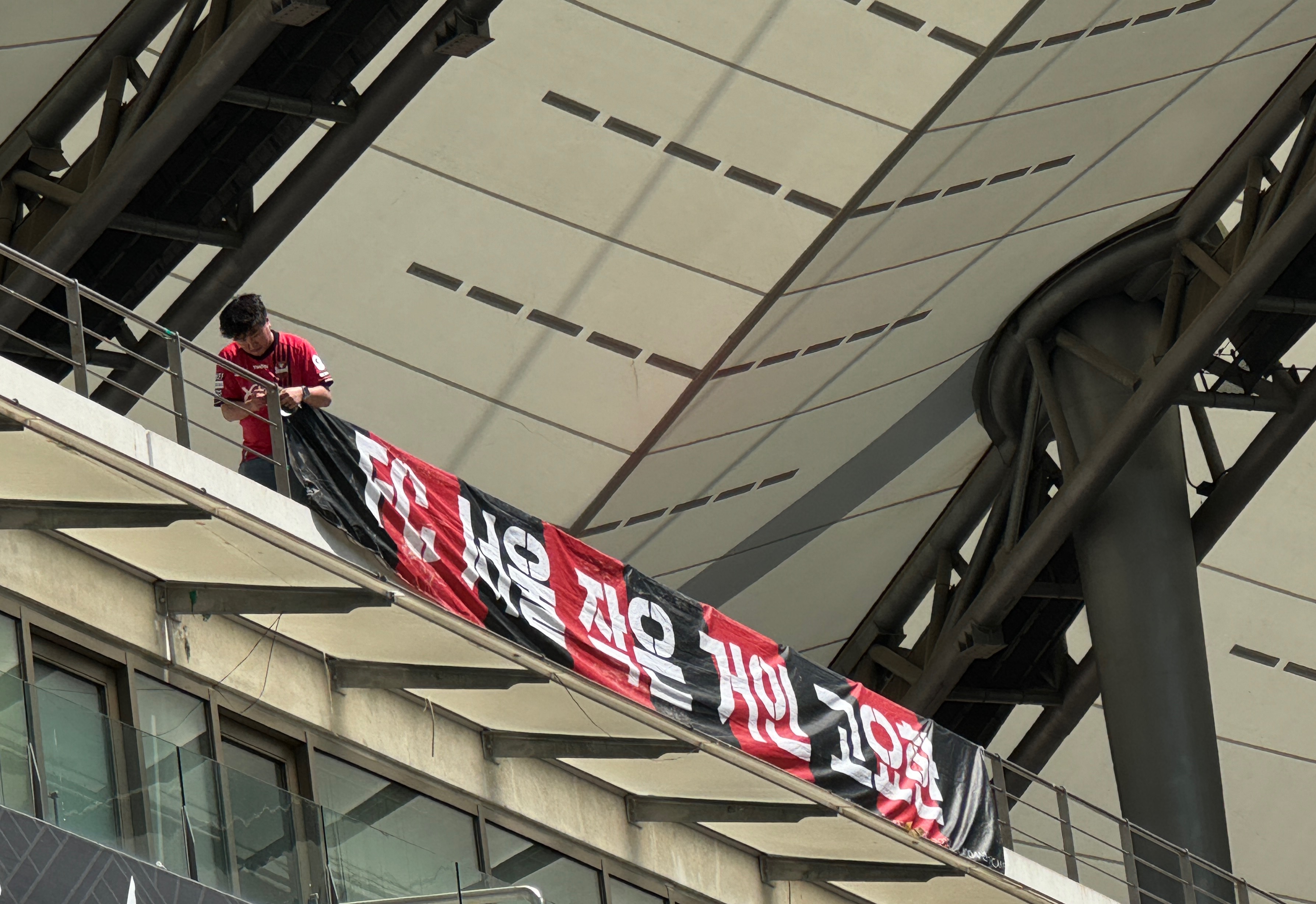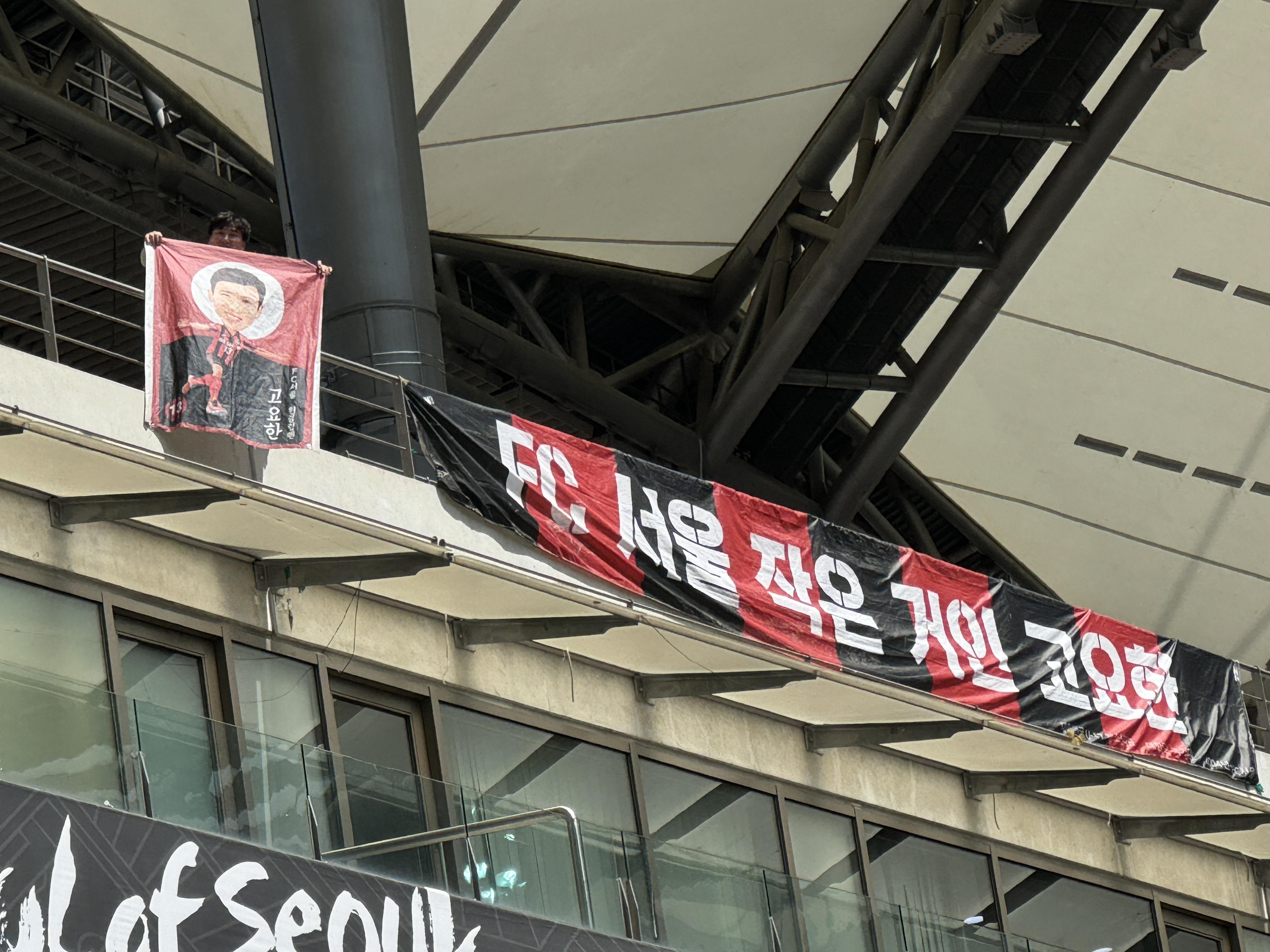 오늘도 오르는 고요한선수의 현수막