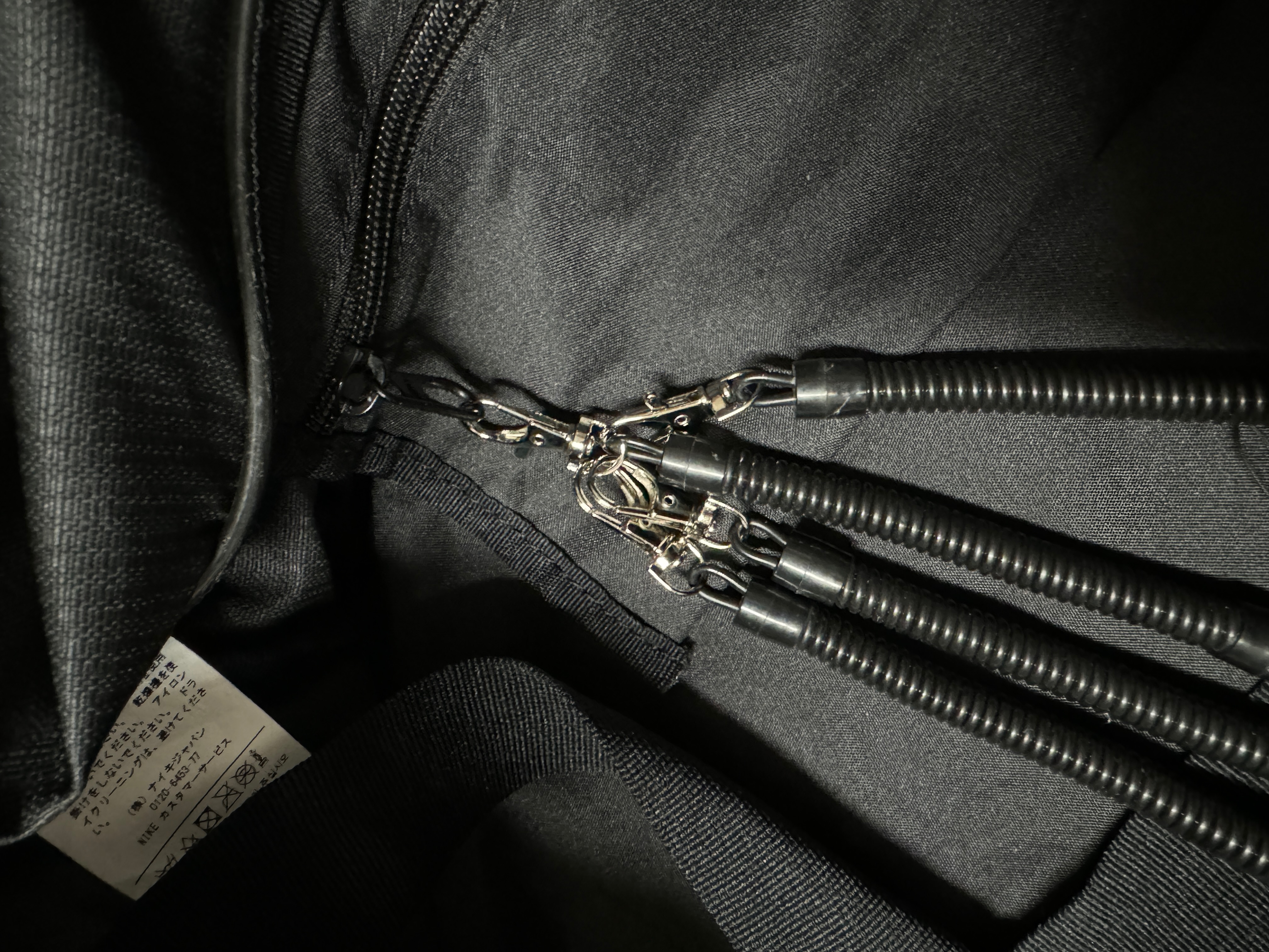 평소에는 캐리어 손잡이에 걸어둬서 큰 부담은 없어요!!