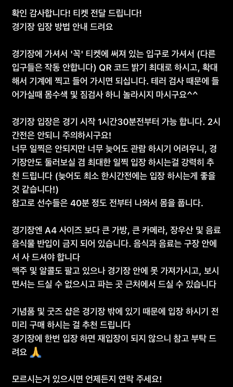 저희는 경기 당일까지도 티켓을 구매하지 않았어요