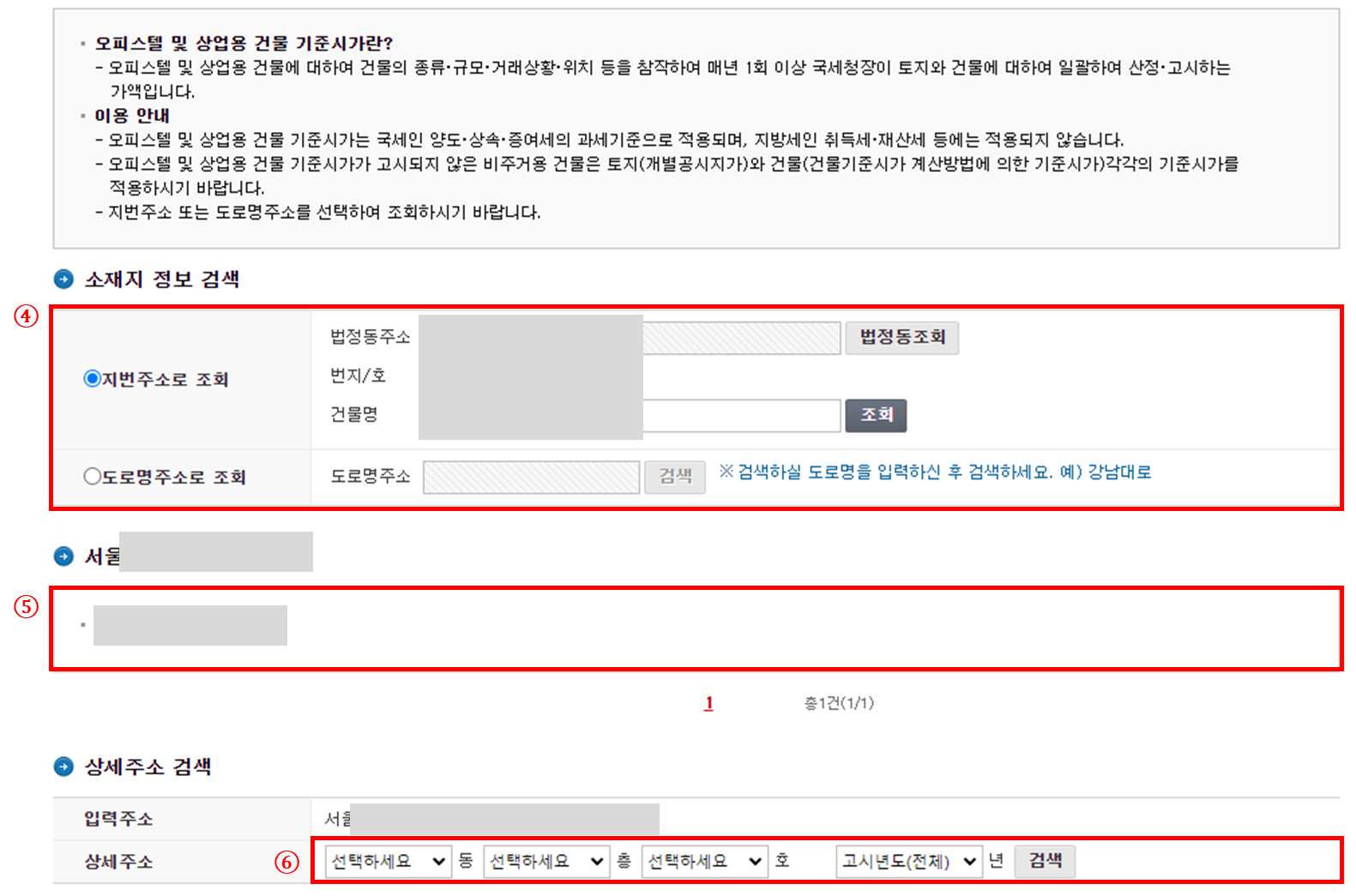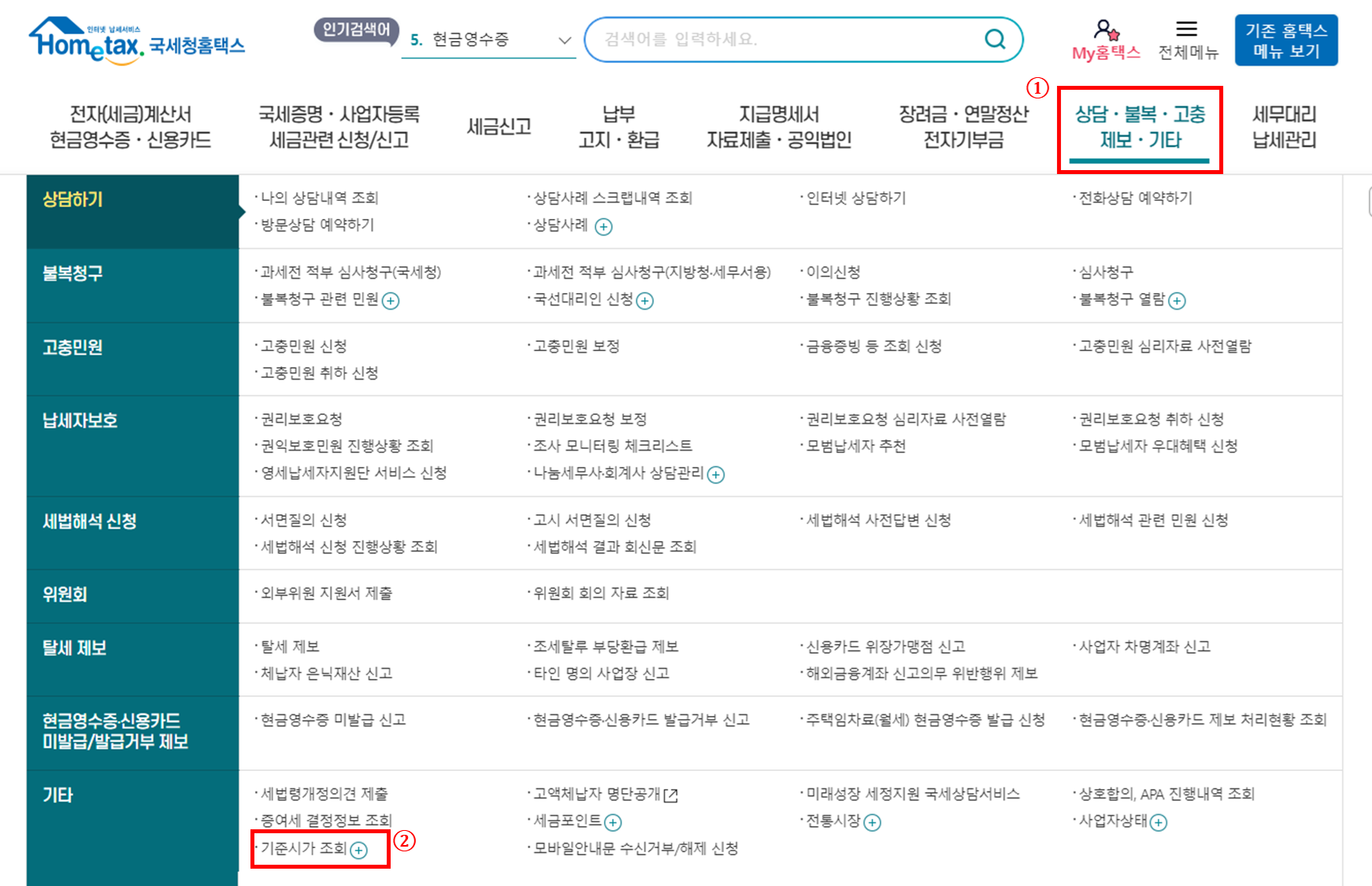 상담 ·불복 ·고충 ·제보 ·기타 > 기타 > 기준시가조회