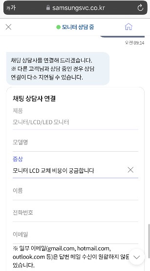 혹시나~ 삼성전자 서비스센터 챗봇을 찾았어요