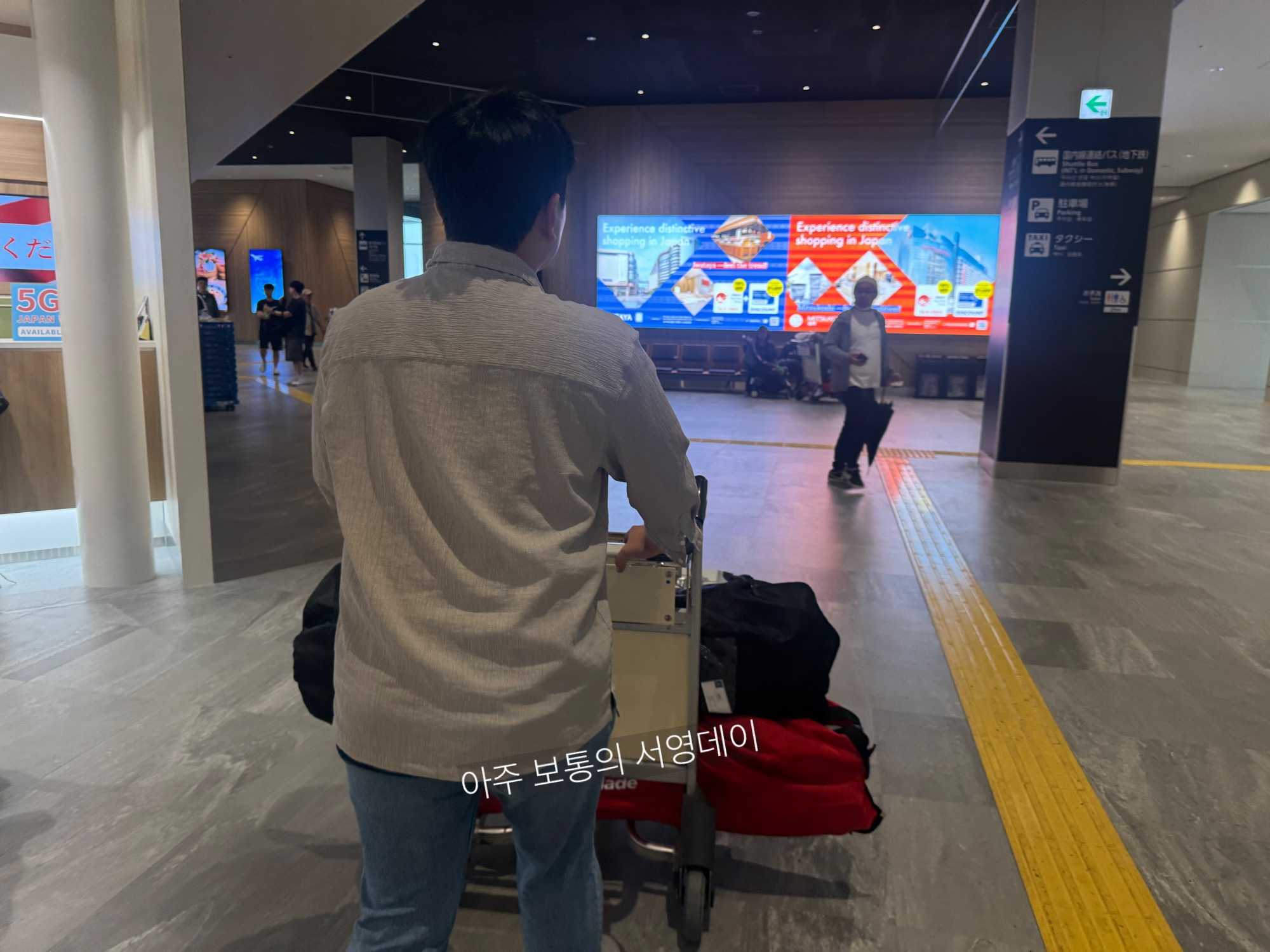 저희는 골프백을 벽에 기대고 이동하기위해 눈 앞에 셔틀버스는 보내고 다음 버스로 탔어요