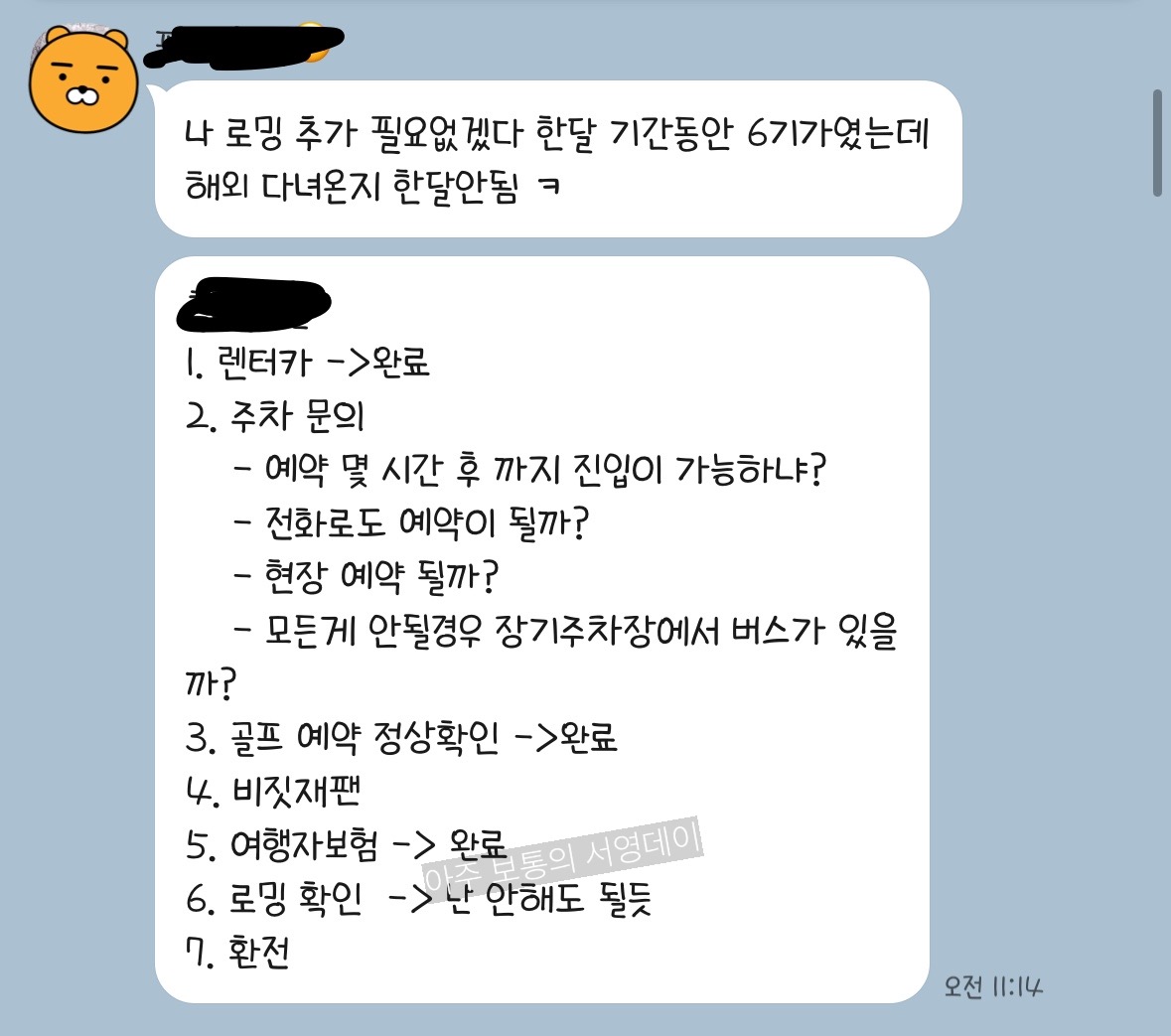 사실 골프 부킹, 렌터카 말고는 당연히 해야할 일이지만 급하면 아무것도 못하니 카톡에 적어두는 편이에요