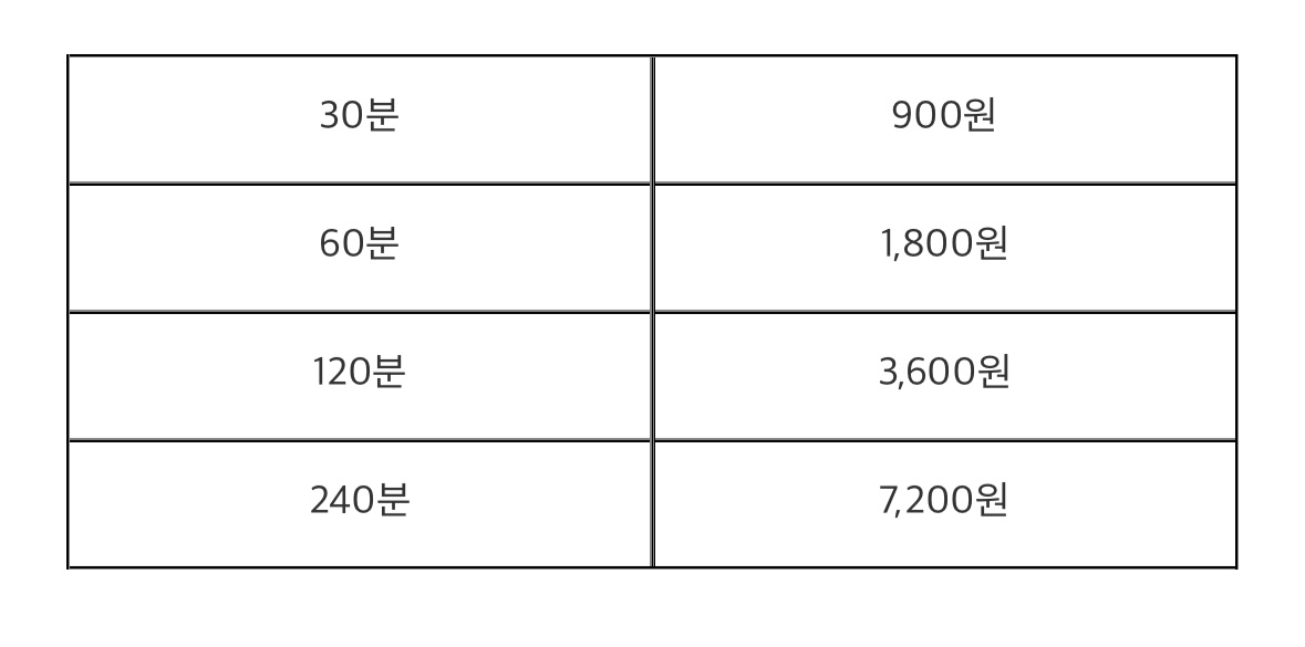 The first one hour is free, and after that, a fee of 500 KRW is charged for every 10 minutes.