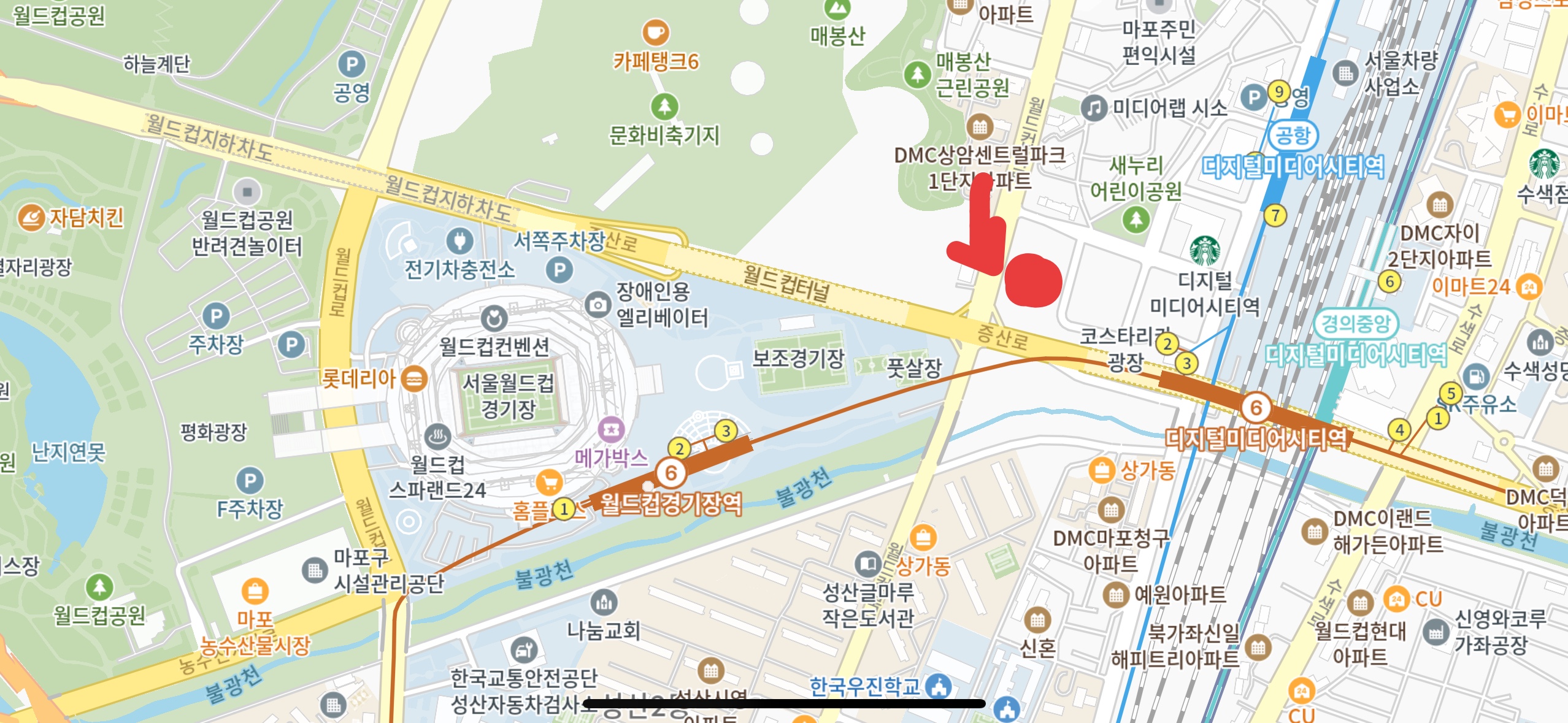 서울월드컵경기장은 6호선 월드컵경기장역과 인접해있는데요. 2번출구를 이용하는 것을 추천드립니다!