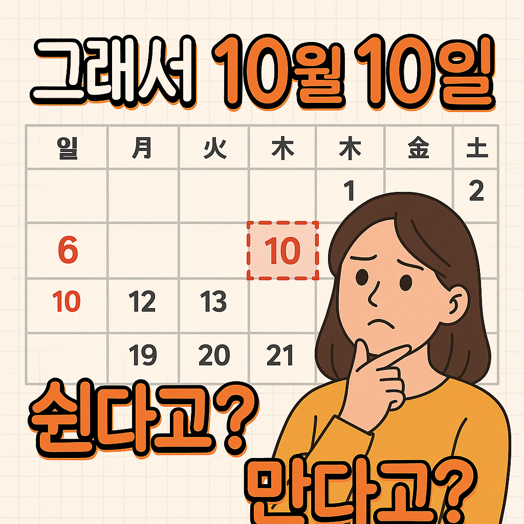 - 2025년 8월 15일, 기획재정부는 “10월 10일 임시공휴일 지정은 전혀 검토하지 않는다”고 밝혔습니다. 장기 연휴가 오히려 해외여행 수요 증가, 수출 및 생산 차질을 야기할 수 있다는 이유에서였습니다.