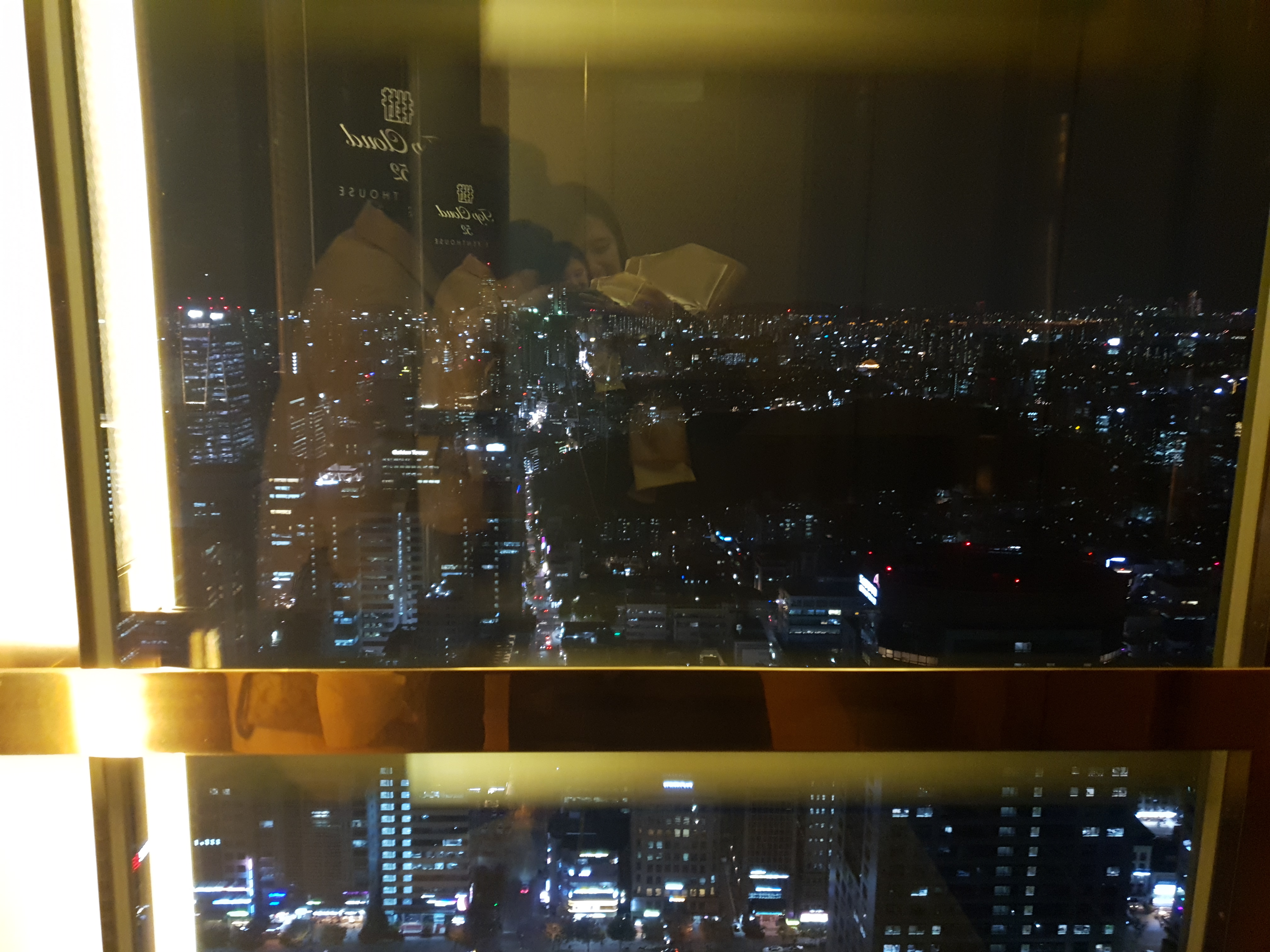 예약 고객용은 이렇게 엘리베이터에서 야경이 보이는 반면